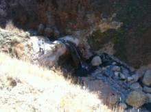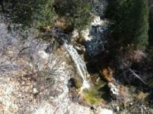 In 2009, we hiked the eastbound trail to these hot springs. This time we went west, and it was just as great a fall hike. From the trail head, follow an old Jeep trail west across the range cow pasture. Fifth Water Creek will be on your left for the duration of the hike, but you should never cross the creek. At .75 miles, you will come to a fork. Go left into the woods, where the trail will narrow. At 1.08 miles, you'll see your first waterfall. Another appears at 2.39 miles. That's also about the time you begin to smell the sulphur from the hot springs a few hundred feet father up the trail. Enjoy the springs, but remember it's uphill on the way back to the trail head. GPS data for this hike and more at: http://www.trimbleoutdoors.com/ViewTrip/2475224