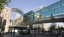 Boasting 80 specialty stores and restaurants, hundreds of housing units in four towers and a Harmons grocery, City Creek Center spans 700,000 square feet on the two city blocks that once housed Crossroads Mall and ZCMI Center. Connected by a sky bridge over Main Street, it has 18-foot waterfalls, retractable glass roofs and a stream  re-creating City Creek  running through it.