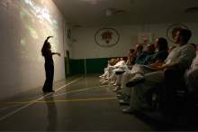 On Tuesday night, the men in white corrections gear and green sweatshirts watched National Geographic footage of Nadkarni scaling Costa Rican rain forest tree canopies.