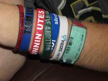 Britton wears a number of wristbands, including one from Runnin' Utes coach Larry Krystkowiak, who also sent down some Utah gear.