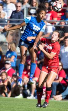 • BYU's Ashley Hatch scores her eighth goal of the season.