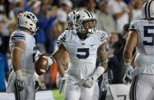 But the BYU defense, which allowed 692 total yards, gave up a 79-yard touchdown drive (including a fourth-down conversion) and two-point play, forcing the offense to respond again as the calendar turned to October. The crazy bounces of this Cougar season continued when Toledo quarterback Logan Woodside dropped a shotgun snap that surprised him, but he grabbed the ball and completed a two-point pass to send the Rockets ahead with 1:11 left.