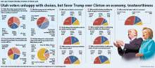 But the Dan Jones & Associates poll of 823 likely voters also found that Trump and Clinton are intensely disliked in Utah. Trump is viewed unfavorably by 70 percent of voters, but still eclipsed by Clinton, who is frowned upon by 75 percent. A remarkable 79 percent of those surveyed are unsatisfied with their choices this presidential election.