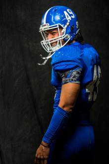 Rossi was an extremely proficient marksman this season for the Knights, finishing No. 1 in the state for kick scoring, with 115 points, after converting 61 of 62 point-after attempts and splitting the uprights on 18 of his 20 field goal tries. As of early December, Rossi ranked fourth nationally in kick scoring. "On and off the football field, Tom's quality example, sound judgment, and positive energy have made him a great example for his teammates," wrote Lone Peak coach Mike Mower. "His unassuming confidence, commitment, and dependability generate strong trust with the team. His coaches and teammates love and respect him." How the All-Tribune Football Team was chosen: Tribune and TribPreps staff used personal observations, analysis of season statistics, and input from coaches throughout the state to select an All-Tribune Player of the Year and an additional 24-member All-Tribune Team. These players were selected from throughout the state and regardless of classification.