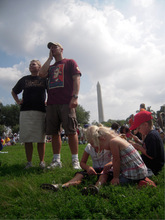 Clements who claimed her spot near the Reflecting Pool at noon Friday and stayed up all night to hold it said the rally wasn't about Glenn Beck, but about standing together with a common cause.