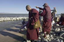 For three years, Utah Buddhists have collected money from Buddhists worldwide to buy brine shrimp eggs and release them into the Great Salt Lake on holy days. Getse's visit was the auspicious event occasioning Monday's release.