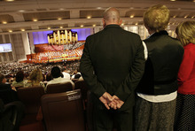 Eyring, first counselor to church President Thomas S. Monson, and other LDS authorities addressed tens of thousands of people seated in the giant Conference Center in downtown Salt Lake City, as well as millions more watching via satellite in Mormon chapels, on television or via the Internet.