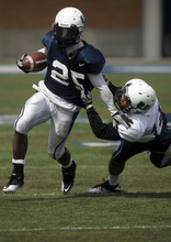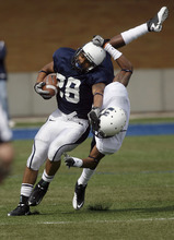 Kennedy, the big junior-college guy with the strong arm, was impressive but not nearly as efficient as Hart. Still, Kennedy went 19 of 33 for 223 yards through the air. However, he threw an interception to senior safety Walter McClenton that went the other way for a touchdown.