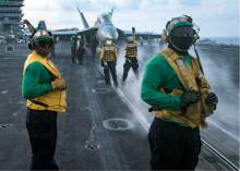 By conducting joint exercises with the Maritime Self-Defense Force and through other means, the U.S. aircraft carrier strike group is poised to increase military pressure on North Korea and urge Pyongyang to engage in restraint.