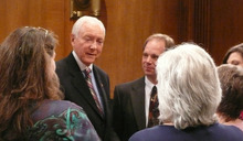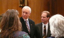 After the hearing, Hatch posed for photos with a group of Utah tea party organizers, who just the day before led an anti-Hatch rally on the steps of the National Republican Senatorial Committee. Kirkham participated in that rally.