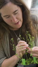 Her experiments are conducted on thale cress, an ideal plant for use in labs because it is a compact self-pollinator that produces lots of seeds and its entire genome is known. The research got a big boost when Sieburth happened upon a mutant strain that overproduces the triggering molecule responsible for diminished growth. When they graft a mutant root to healthy plants, leaf growth stalls.