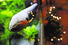 Sparky, so dubbed by the folks at Cache Valley Electric who sponsored the eel display at Living Planet, is providing the "twinkle" of lights on the 5-foot Christmas tree just outside of his aquarium. This is the second year Sparky has been "shocking" visitors to the aquarium.