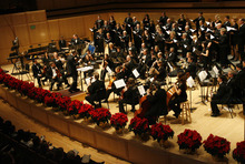 Michael Jesse Bennett, a longtime friend of UCA, charmed the crowd with his portrayal of the newly reformed Ebenezer Scrooge in a scene from "A Christmas Carol," accompanied by music Bradford wrote in 2003 for the Hale Centre Theatre's enormously popular and long-running production. Bennett's lines didn't always cut clearly through the orchestration, but his jolly spirit always shone through.