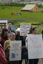 Geddes, like four dozen others who took part in a rally before the board's meeting Tuesday, said the new policy, in effect, violates the statewide ban on radioactive waste that exceeds Class A hazard limits. That ban was sought by former Gov. Jon Huntsman and enacted by state lawmakers in 2005.