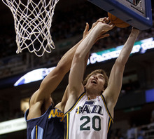 The new-look Jazz initially defied that description, allowing the Nuggets to shoot 64.7 percent from the field in the first quarter and take a 32-30 edge. Denver quickly cooled off, as the Jazz took advantage of the Nuggets' soft interior defense and surged to a 63-55 halftime lead behind Al Jefferson's 13 points.