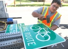 At the same time, he added, "the signs also are good for motorists," warning them to be aware of cyclists along the sides of those roads that will be restriped and equipped with signs of the routes.