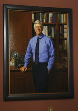 One last note: Upon each of the paintings, a small brass plaque like an epitaph identifies the likeness and when each served as mayor except for Anderson's, which bears none. It could hint that he isn't quite finished at City Hall.