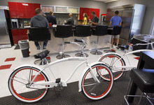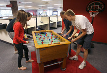 Ryan Smith successfully begged his brother, Jared, who used to work at Google, to come back to help run Qualtrics' product development and engineering team (which works in an area of the office dubbed the Death Star). And Qualtrics is operated with a Google-esque office culture, Scott Smith said. Instead of cubicles, the space features small desks to keep clutter to a minimum. There are Qualtrics bicycles inside for employees to ride, a pingpong table and chess table, and two arcade basketball machines. Ryan Smith paid $800 for an old VW bus that the company moved into the office and turned into a snack station.
