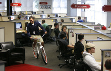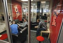 The company stresses transparency. From one end of the office to the other, you can see through all the small meeting rooms and glass conference areas given cartoon names such as "Bam Bam" and "Pebbles." Employees can even write notes on the windowed walls with whiteboard markers.