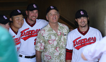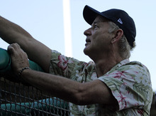 R The Bees wear Salt Lake Trappers throw-back jerseys, and actor Bill Murray (once a part-owner of Trappers) threw the ceremonial first pitch before the game. More than 10 former Trappers players from 1987 are in attendance to commemorate their season that had 29 straight wins.