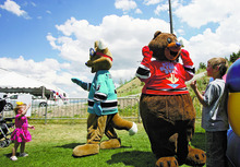Most of the Utahns at Saturday's event were playing tour guide to visitors or herding small children through bounce houses and mock sporting events.