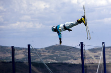 Autumn Jennings, of Salt Lake City, came to watch her son, Spencer, test his snowboarding skills on the practice ramp.