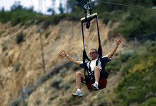 Most turned out to watch the contortions of American and Australian aerialists training at the park's splash pool but were happy to join the festivities. And while the presidential election was far from vacationers' minds, they came with mixed opinions about Mitt Romney's use of the 2012 Summer Games as a campaign platform.
