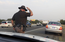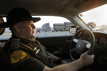Lehi • The car in the express lane cruises near the speed limit, but slows abruptly as it approaches a Highway Patrol car ahead in another lane. Trooper Emery Calkins notices that in his mirror taking it as a sign the car may have only a single driver, instead of the two occupants required in such lanes.