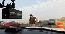Still, Calkins is kept plenty busy, repeatedly pulling over violators during the morning rush hour as a Salt Lake Tribune reporter and photographer ride along. Lots of cars can be spotted pulled over by other troopers in the blitz.