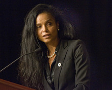 As she stood to deliver the day's keynote speech under the light of a large crystal chandelier at the high-end hotel, Rowell thanked the organizers and award winners then recognized the wait staff, cooks and housekeepers, or "these people who make the world go around, so many of them women."