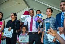 "You remind those of us born here of what we often take for granted," she said. "Thank you for all that you have done and will do to keep the promise of America great."
