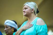 Clutching her certificate of citizenship after the ceremony's end, a watery-eyed Mehmedovic said she was nervous and excited while taking the oath, even though she's lived here for so long.