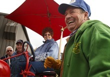 After breakfast, as the 15 tractors assembled to start the parade, Maggie Bradley climbed into a 1947 International Cub. It was the slowest model in the lineup, with a top speed of 7 mph, or 10 mph on gentle declines.
