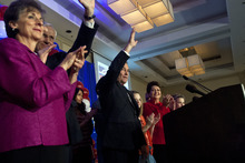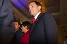 Herbert argued that you don't fire a coach when the team is winning, and boasted that the state's economy has been among the strongest in the country. Voters rallied behind him and propelled him to a huge lead. With nearly 100 percent of the vote counted in unofficial results, Herbert led Democrat Peter Cooke by a margin of more than two-to-one.