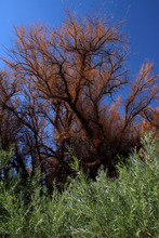 Sad, in this case, is in the eyes of beholder. The dying stands of bushes are tamarisk a non-native, invasive species from Eurasia introduced to the American West more than a century ago. Tamarisk has taken over the banks of many Western rivers and is particularly thick along the Colorado in Canyonlands.