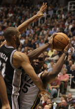 The Jazz handed the Spurs (18-5) just their third road loss of the season, and defeated San Antonio for just the second time in their last 13 games, including last year's first-round playoff sweep.