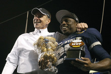Williams, in his final collegiate game, ran for 235 yards and those three scores on just 18 attempts. That's 13.1 yards per carry, for the math geeks at home. He also became the WAC career leader in all-purpose yardage.