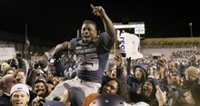 Boise, Idaho • One by one, the Utah State players approached a stunned and silent Kerwynn Williams on the Aggie sideline, each offering a few words of support, making sure he knew that there were still seven minutes remaining in the fourth quarter.