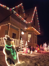 But as part of the family's first Christmas in the home, they are bringing some Disney magic with lots of lights and inflatable animated characters on the front lawn.