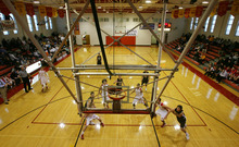 These days, the gym is often one of the newest and nicest buildings in Utah's small towns, a gathering place for all sorts of community events. At the bigger urban high schools where the facilities serve many functions and teams, most are sprawling complexes of hardwood floors and lines. At a given moment, you might have a wrestling meet, a basketball practice and a drill team workout going on in different areas of the same building.