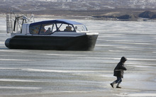 Walking gingerly from the hovercraft to meet his friend out on the ice, Musselman told Sabey to be careful. He prodded some snow with his foot, glanced at the sun. The ice was growing thinner by the hour.