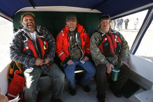 As fishermen exited the hovercraft, several inquired about getting their own smaller hovercrafts to use on the ice.
