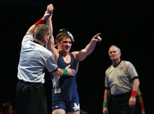 In a hallway away from the wrestling mats, his Millard teammates rushed to congratulate him, lifting him off the ground with bear hugs.