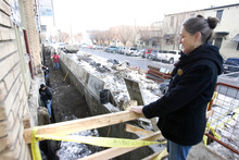 "Our sales are down nearly 70 percent," said Kate Bullen, owner of Elemente, a used-furniture store, whose front door has been completely cut off from the street by the construction.