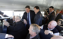 After weeks of protests and criticism over pollution and inversions, Gov. Gary Herbert and legislative leaders jumped Monday on the natural gas bandwagon literally to promote its increased use as a motor fuel to help clean Utah's air.
