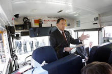 They held a press conference inside a natural-gas-powered school bus not near it, but in it to unveil and explain several bills they say will help reduce pollution.