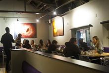 A modern nightclub backed by a kitchen preparing fresh, sustainable vegetarian and raw fare in downtown Salt Lake City.
