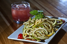 Zest's menu is a relatively tight selection of small and large plates that change to highlight seasonal ingredients from local vendors such as Mololo Gardens. All of the food, as well as cocktails, focus on sustainable, organic, fresh and often raw ingredients. Vegetarian and gluten-free dishes are typical offerings.