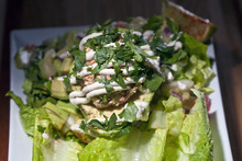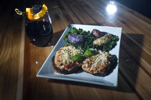 On the small plate menu, chilled marinated mushrooms ($8) were stuffed with a generous amount of chopped kalamata olives and packed with Mediterranean flavor. The stir fry of the day ($7) a table favorite featured an excellent mix of lightly steamed peppers, zucchini, mushrooms and broccoli in a delicate curry sauce. Crunch, spice and color added up to a delightful bowl to share.