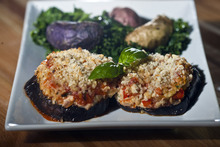 Raw options include the stuffed avocado with spicy walnuts and cashew sour cream and zucchini noodles accented with pine nuts, pesto and tangy tomato sauce. For a more traditional take on dinner, try the eggplant Parmesan topped with a raw and well-flavored tomato sauce and a small side of fingerling potatoes.